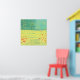 Un paysage moderne et contemporain avec une paisible prairie fleurie remplie d'oiseaux volant contre le ciel et une forêt de pins au loin. Couleurs jaunes et vertes fraîches et relevantes. Art original de Nic Squirrell.