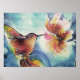 Affiche Peinture HummingOiseau et Flower Silk Art