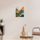 Affiche Peinture Paysage Abstrait Or Pêche Bleu