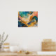 Affiche Peinture Paysage Abstrait Or Pêche Bleu