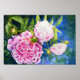 romantique élégante gracieuse rose et blanc pivoines - aquarelle peinture de H Cooper