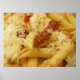 Penne de pâtes à l'huile d'olive, tomates séchées au soleil et fromage de chèvre râpé.