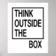Ajoutez un peu d'humour et d'inspiration à votre espace de travail avec cette affiche de motivation amusante avec l'expression classique "Pensez à l'extérieur de la boîte". Disponible en version imprimée et en téléchargement numérique.