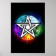 Pentagramme lumineux dessiné de façon artistique avec cinq éléments magiques, eau, terre, feu, astral, air sur arrière - plan noir. Pentagramme de Wiccan. Wicca