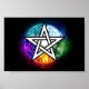Pentagramme lumineux dessiné de façon artistique avec cinq éléments magiques, eau, terre, feu, astral, air sur arrière - plan noir. Pentagramme de Wiccan. Wicca