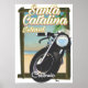 Père Noël Catalina Island, Californie Etats-Unis - affiche de voyage de moto Retro .