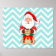 Affiche Père Noël en pyjama rouge tenant une tasse