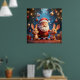 Père Noël pose joyeusement avec deux lapins joyeux au milieu d'une forêt de Noël magnifiquement décorée, ornée de lumières et de décorations pour créer une atmosphère de vacances magique et festive.