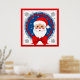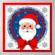 Image colorée sur le thème des fêtes représentant un Père Noël joyeux sur fond enneigé, orné d'un nœud rouge vif et de décorations saisonnières, évoquant l'esprit de Noël et la joie.