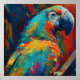 Poster pour ceux qui aiment les perroquets. C'est une jolie illustration dans un style de peinture à l'huile d'un perroquet coloré bleu, rouge et jaune Macaw.