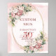 Celebrate a milestone moment with this personalized 50th birthday custom sign designed in soft watercolor florals and elegant greenery. Featuring a refined color palette of rose gold accented with blush pink, dusty pink, and pastel pink tones, this sign adds sophistication and warmth to your birthday décor. The delicate floral artwork combined with fresh botanical greenery creates a timeless and feminine look perfect for elegant milestone celebrations.