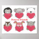Affiche Personnages Animaux Amis Pour Toujours Coeurs Enfants. Chaque animal tient un cœur. Offrez-la à un ami qui déménage, ou modifiez le texte et décorez-la dans la chambre de votre enfant.