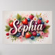 Célébrez la douceur et le charme avec ce poster personnalisé au nom featuring le nom Sophia dans une écriture 3D élégante, entouré de fruits aquarelles vibrants et d'éléments floraux doux. Fraises juteuses, myrtilles, framboises et fleurs délicates se réunissent dans un arrangement botanique de rêve — parfait pour les nurseries, les chambres d'enfants ou les cadeaux d'anniversaire.