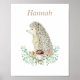 Joli hérisson des bois avec feuillage forestier et champignons, affiche personnalisée. Le style de police de texte, la couleur et la taille peuvent être personnalisés.