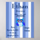 Nom signifiant salle de garderie, entièrement customisée avec nom et texte. Votre bébé ou vos enfants s'entendent comme décoration de pépinière avec date de naissance. Cette conception a une jolie illustration de hibou bleu et un arrière - plan à rayures bleues. Le sens est pour le nom Ethan mais peut être entièrement fait sur mesure pour vous avec le nom et l'information de votre enfant.