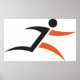 Symbole noir et orange d'une personne qui court. Ce design semble vraiment efficace sur ces Poster