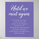 Ce mémorial élégant de couleur pervenche et blanc est une belle façon de se souvenir et d'honorer ces amis et membres de la famille qui sont partis, mais que vous aimerez et vous souviendrez toujours, avec ce poignant poème “Jusqu'à ce que nous nous retrouvions”. Incluez-le, ainsi que des photos du défunt, sur une table de souvenirs.
