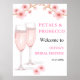 Pétales et Fête des mariées de Prosecco Thème - Pétales modernes et élégants et Prosecco Aquarelle rose pâle Affiche de bienvenue de Fêtes des mariées florales!