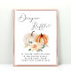 Joli signe de retrait de la tombola de couche neutre genre pour votre baby shower qui présente "Déchets" dans un script chic avec un coeur swash et aquarelles de citrouilles et floraux orange et blanc. Personnalisez facilement les instructions de la tombola de couche en typographie simple.