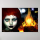 Affiche Petit Cheveux rouge Feu sorcière fille art Imagina