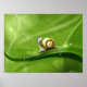 Un mignon escargot de dessin animé sur la feuille sous la pluie. Snail a un regard malheureux sur son visage alors qu'elle voit la pluie tomber.
