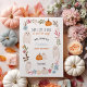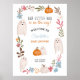 Bienvenue à vos invités dans un style éffrayant avec ce joli panneau d'accueil baby shower Halloween ! Doté d'adorables fantômes d'aquarelle peints à la main, de citrouilles et de délicats floraux bleus d'automne, ce panneau donne le ton festif parfait pour votre célébration. Le script ludique "Our Little Boo is on the Way!" saisit l'essence de l'occasion, tandis que le message personnalisé ajoute une touche chaleureuse et accueillante. Idéal pour l'affichage sur un chevalet, ce panneau combine le fantaisie d'Halloween avec le confort de l'automne, ce qui en fait un joli ajout à votre décor de baby shower.