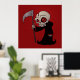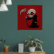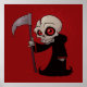 Illustration d'une petite faucheuse Grim avec les yeux rouges tenant une escroquerie.