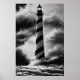 Phare dans une tempête de mer, peinture à l'huile, noir et blanc. Image numérique.