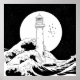 Illustration en noir et blanc du phare de Bell Rock en Écosse. D'énormes vagues s'écrasent autour de la base du phare.