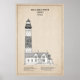 Cette illustration unique du phare de Big Sable Point est présentée sous la forme d'un plan technique de couleur sépia, alliant la précision du dessin architectural à la chaleur de la mémoire historique. Le fond brun doux évoque le papier vieilli et les plans d'ingénierie antiques, donnant à la structure une qualité intemporelle et archivistique.