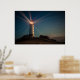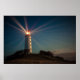 Cette photo montre le phare Hiddensee qui brille la nuit sur Dornbusch Hill.