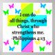 Partagez l'amour de Jésus-Christ avec ce papillon coloré et croisez Philippiens 4:13 Poster de www.zazzle.com/PostersofHope. "Je peux faire tout par le Christ qui me fortifie". Toutes les choses sont possibles pour tous ceux qui croient, et vous êtes un croyant tandis que vous éprouvez la puissance, l'amour et la force de Jésus chrétien chaque jour de votre vie. Cette affiche Philippiens 4:13, douce et spéciale, fera un cadeau apprécié pour les anniversaires, les vacances, toutes les occasions ou simplement pour dire que j'aime prendre soin de vous. Profitez de cette affiche Philippians 4:13 relevante affichée dans votre maison. Quelle merveilleuse façon de partager l'amour et l'espérance de Jésus-Christ. Profitez de notre collection originale d'art mural chrétien, spirituel, inspirationnel et de récupération à l'adresse www.zazzle.com/PostersofHope.