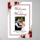 Affiche Photo de bienvenue de mariage floral bordeaux