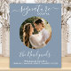 Boissons de signature ! Calligraphie simple mais élégante, ce panneau de bar de boissons signature présente un cocktail "les jeunes mariés", personnalisé avec votre boisson de choix. Personnalisez ce panneau de mariage élégant avec votre photo de fiançailles ou photo de couple préférée, nom et boisson signature ! Vous pouvez également personnaliser les photos pour les boissons signature avec vos animaux de compagnie préférés pour un mariage d'animaux ! Personnalisez avec des photos de chien ou de chat. COPYRIGHT © 2020 Judy Burrows, Black Dog Art - Tous droits réservés. Photo de cocktail signature Affiche de bar de mariage bleu poussiéreux