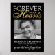 Élégante affiche de mémorial de funérailles présentant une photo de votre proche disparu, le texte "à jamais dans nos cœurs", son nom, dates de naissance et de décès, un cœur en feuille d'or faux et la phrase de souvenir "parti mais pas oublié".