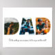 Ceci est un collage photo qui épelle le mot DAD avec un message personnalisé. C’est le cadeau parfait pour papa pour le jour du père, son anniversaire ou Noël.