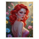 Affiche Pin-Up Rousse dans un Champ de Fleurs