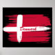 Impression de poster moderne avec illustration de pinceau artistique du drapeau national danois sur fond noir avec texte rouge superposé
