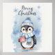 Une charmante illustration hivernale d'un adorable petit manchot portant un casquette rayé bleu et une écharpe, apportant une ambiance cosy et festive. Les flocons de neige doux et les tons bleus doux de l'arrière - plan créent une atmosphère hivernale magique. Parfait pour les cartes de Noël, les affiches, les autocollants et l'artisanat saisonnier !