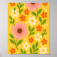 Affiche Pink, cream & Orange Flowers with Green Leaves