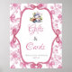 Ajoutez une touche de charme à votre fête du thé avec ce Tea Party Fleur sauvage rose Cadeaux & Cartes Signez ! Doté de délicats fleurs sauvages d'aquarelle aux teintes roses douces, cet élégant panneau est parfait pour guider les clients à laisser leurs cadeaux réfléchis et leurs cartes sincères. Qu'il s'agisse d'une douche nuptiale, d'un baby shower, d'un thé d'anniversaire ou d'un événement sur le thème du jardin, ce panneau ajoute une touche fantaisiste et sophistiquée à votre décor.