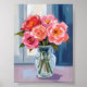 Pink Rose Bouquet Glass Vase Romantic Floral Painting Art Poster Print