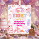 Affiche Pink Wavy Retro 67 8th Birthday Welcome Sign