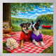 Luna le Boston Terrier et Louie le JackChi profitent d'un peu de repos avec un pique-nique sous un arbre, au bord du lac, et peut-être une balade en barque plus tard.