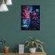 Thème : Monde futuriste et dystopique inspiré par les jeux cyberpunk. Image centrale : Un personnage de style cyberpunk, avec un équipement high-tech et une interface holographique. Arrière - plan : Ville futuriste avec néons, voitures volantes et écrans numériques. Texte : "Hack the System" Couleurs : bleu néon, violet, rouge et noir.