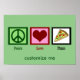 Une affiche de pizza cool avec un signe de paix, un coeur et une tranche de pizza avec des champignons et des tomates. Une affiche sur mesure mignonne pour une pizza. Customisez avec votre société de pizzas ou votre nom de restaurant italien.