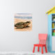 Illustration aquarelle d'une tortue marine se déplaçant sur une plage de sable avec des traces de rampement visibles derrière elle. Des vagues douces sur le rivage, des tons de sable chaud et un style aquarelle libre créent une scène calme de faune côtière. La tortue est représentée dans un cadre naturel de plage avec une texture douce et des détails de fond minimaux. Œuvre d'art assistée par l'IA.
