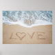 Une scène de plage douce avec un message écrit dans le sable. Photographe : Laura Marshall