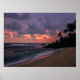 La lumière du soleil qui s'estompe, créant de belles teintes rose et orange dans le ciel, faisant des silhouettes des palmiers et mettant en valeur le surf doux. Une plage calme.