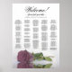 Ajoutez une touche de sophistication à votre journee spéciale avec ce magnifique plan de table de mariage. Une rose rose poudré ou rose mauve superbe se reflète dans une mare d'eau, créant un design à couper le souffle. Le titre indique "Bienvenue - veuillez trouver votre table" en lettrage calligraphié et les noms des mariés et la date du mariage ajoutent une touche personnelle. Avec jusqu'à 200 noms classés par ordre alphabétique, ce plan de table permettra à vos invités de trouver facilement leur place. Élégant, romantique et chic, ce design est parfait pour une réception de mariage sophistiquée et classe.